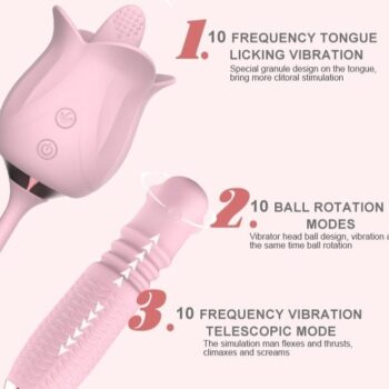 Lurevibe – Rose Sex Toy 4 In1 Tongue Licking Thrusting G Spot Vibrator Clitoral Nipple Sucker Pump Stimulator